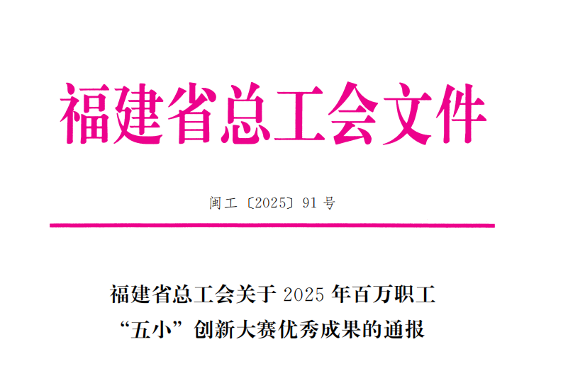 近日,2025 年福建省百万职工 “五小” 创新大赛优秀成果名单正式公布,公司职工凭借在纺织新材料研发、生产工艺优化等领域的持续探索与实践,荣获3项创新优秀成果,其中二等奖1 项、三等奖 2 项,尽显南纺职工的创新活力与技术实力。
