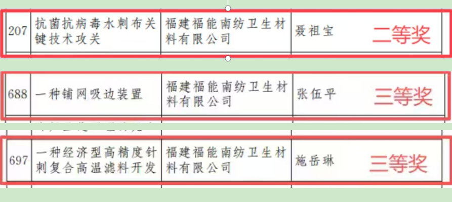 此次获奖的三项成果分别为“抗菌抗病毒水刺布关键技术攻关”荣获二等奖,“一种经济型高精度针刺复合高温滤料开发”“一种铺网吸边装置”荣获三等奖。其中,抗菌抗病毒水刺布技术提升生物防护性能,广泛应用于医疗防护等领域;高温滤料攻克传统产品短板,实现节能减排与降本增效;铺网吸边装置解决生产痛点,减少损耗、提升效率与合格率。这些成果均立足企业生产实际,聚焦提质增效、产品升级、绿色环保等核心需求,通过技术革新与工艺改进,实现了关键技术突破。