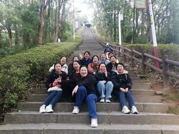 清晨时分,九峰山公园被一层薄雾轻轻笼罩,空气格外清新。女职工们从九峰栈道出发,沿着健康步道前行,途中经过二百坎处的老虎、甜甜圈、骑行者等标志性雕塑,最终抵达通往纪念碑的T型路口零公里打卡处,往返全程约7公里。