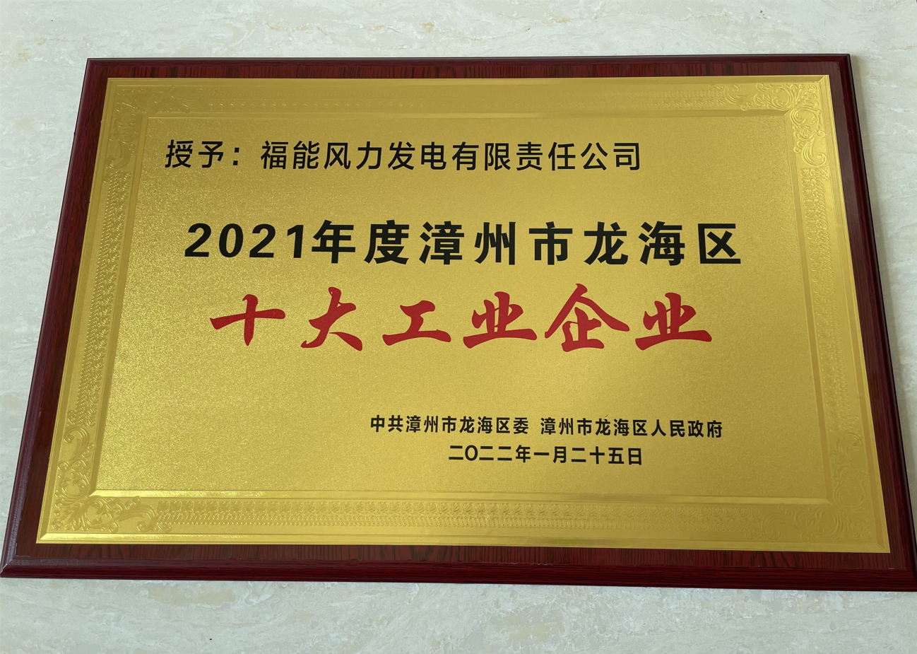 福能(漳州)公司荣获龙海区十大工业企业称号