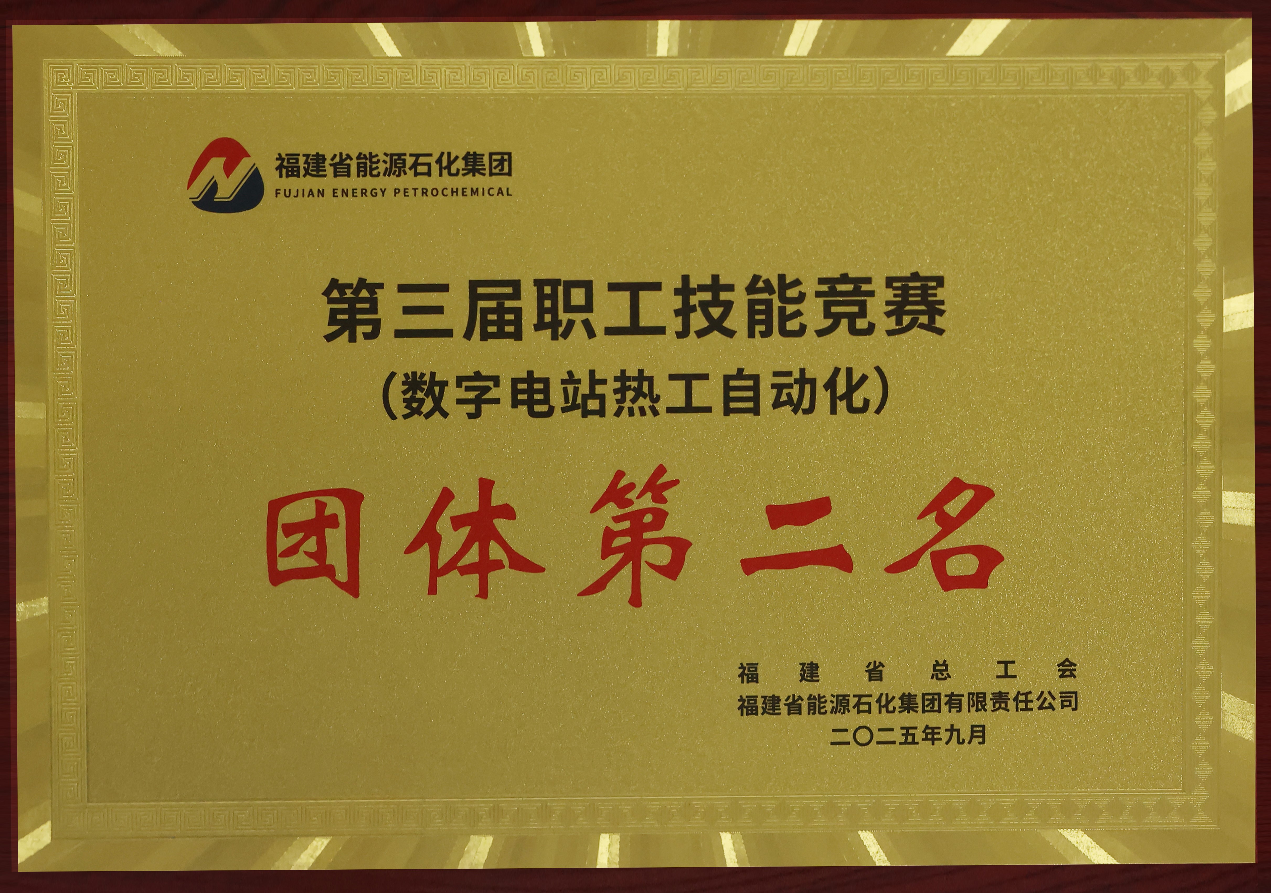 本网讯 9月26日,在刚刚结束的福建省能源石化集团第三届职工技能竞赛颁奖典礼上,公司热控专业的三名员工获得数字电站热工自动化项目团体第二名,陈涛和陈贤燎分别荣获个人第三名和第五名。