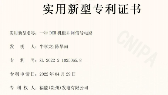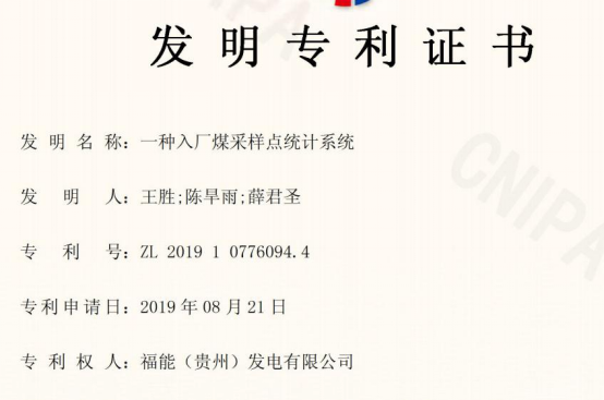 在中国共产党第二十次全国代表大会来临之际,福能(贵州)发电有限公司再获两项专利!分别是发明专利《一种入厂煤采样点统计系统》和实用新型专利《一种DEH机柜并网信号电路》。