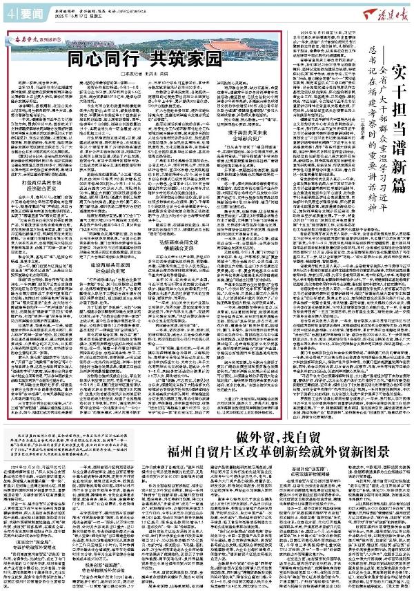 2024年10月15日至16日,习近平总书记再次亲临福建考察,作出重要指示。一年来,我省广大干部群众按照总书记擘画的宏伟蓝图,锚定目标、扎根岗位,实干担当、奋勇争先,以实实在在的工作成效谱写中国式现代化福建篇章。